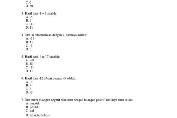 60 Soal Matematika Kelas 7 SMP Semester 1 2025