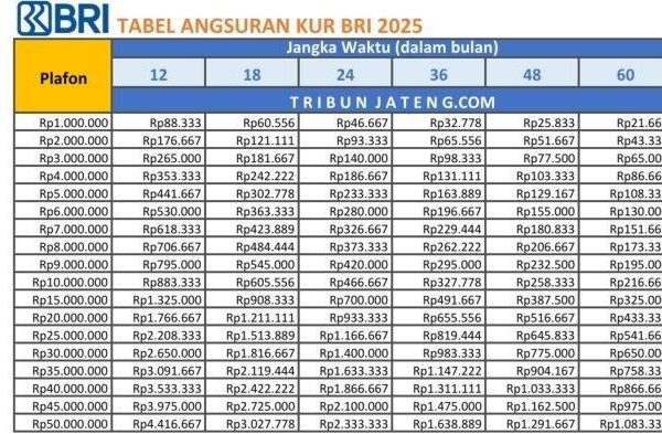 Daftar Tabel Angsuran Plafon Rp1-500 Juta, Syarat Mudah dan Bunga 0,5%